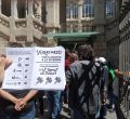 Un grupo de personas se ha concentrado en la Consejería de Vivienda de Cuatro Caminos para exigir la creación de una ley de vivienda y denunciar el elevado número de desahucios diarios en Madrid.