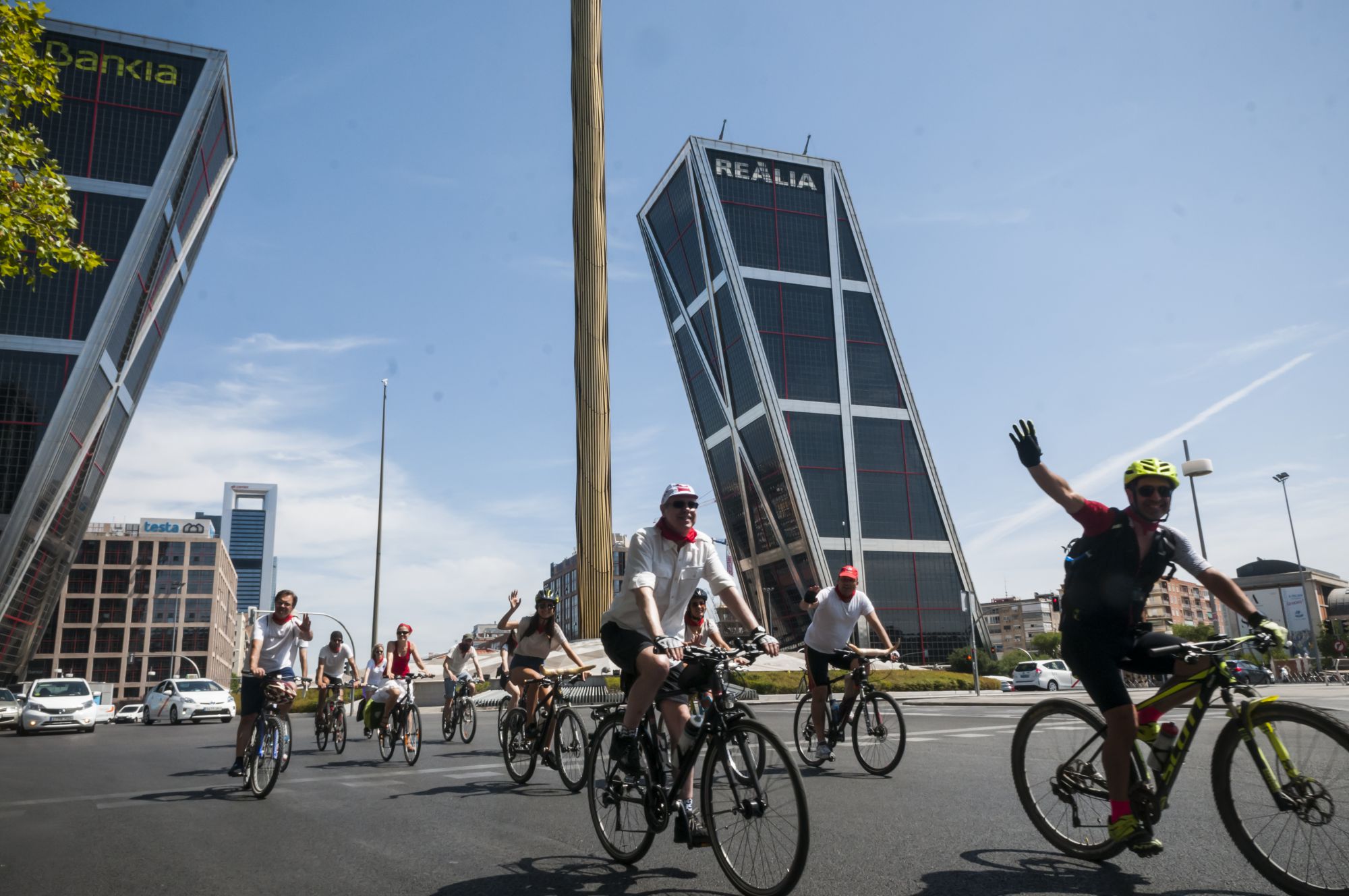 La asociación Madrid Ciclista ha celebrado este domingo su cuarta edición de los BiciSanFermines, unos encierros en los que las protagonistas son las bicicletas, tanto si lo hacen como "toros" (los manillares de las bicis se convierten en improvisadas astas) o como "corredores". (1292 visitas)
