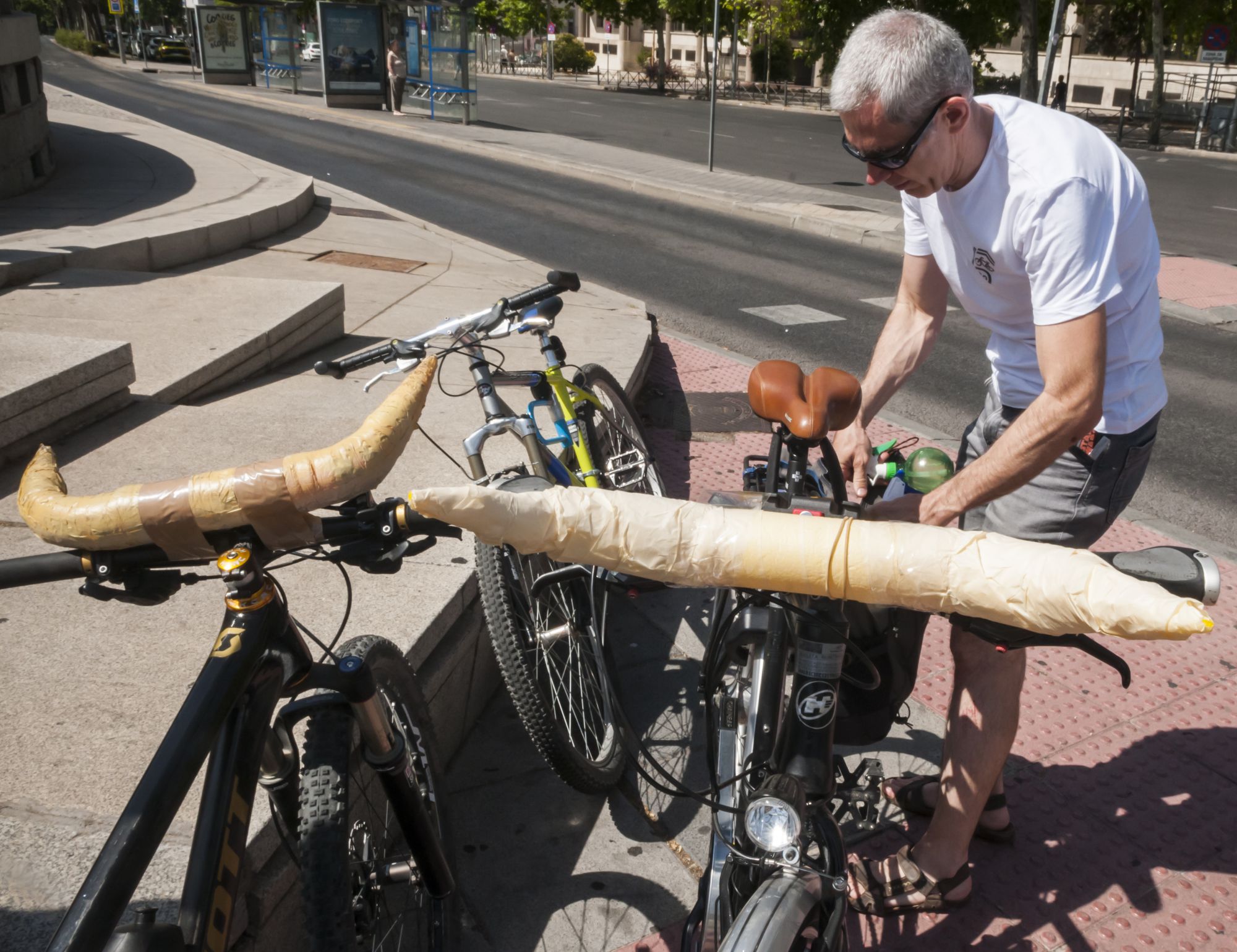 La asociación Madrid Ciclista ha celebrado este domingo su cuarta edición de los BiciSanFermines, unos encierros en los que las protagonistas son las bicicletas, tanto si lo hacen como "toros" (los manillares de las bicis se convierten en improvisadas astas) o como "corredores".