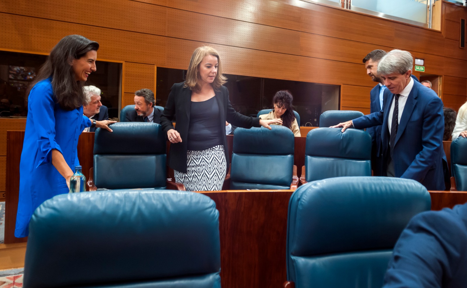 Mientras, la sesión de este miércoles ha dejado imágenes como las miradas entre Ignacio Aguado y Rocío Monasterio, condenados a entenderse, la primera intervención de la candidata de Vox o de Íñigo Errejón como diputados madrileños o a la diputada del Congreso Mari Mar Blanco en la tribuna de invitados del parlamento madrileño el día en que se cumplen 22 años del secuestro de su hermano, Miguel Ángel Blanco.