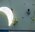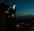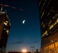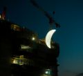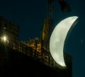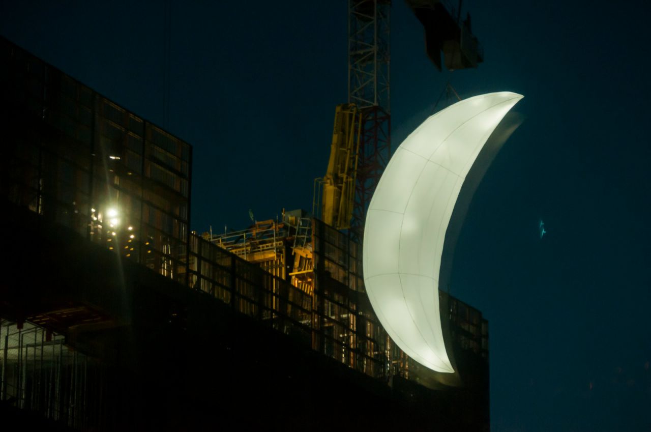 Caleido, uno de los proyectos inmobiliarios más importantes de Madrid, homenajea el 50 aniversario de la llegada del hombre a la Luna (el 20 de julio de 1969). Lo hará con una intervención artística consistente en una Luna brillante- en fase de cuarto creciente- de nueve metros, obra del artista SpY, que se suspenderá en la fachada. Este martes por la noche se ha hecho una prueba para que este sábado salga todo a la perfección.