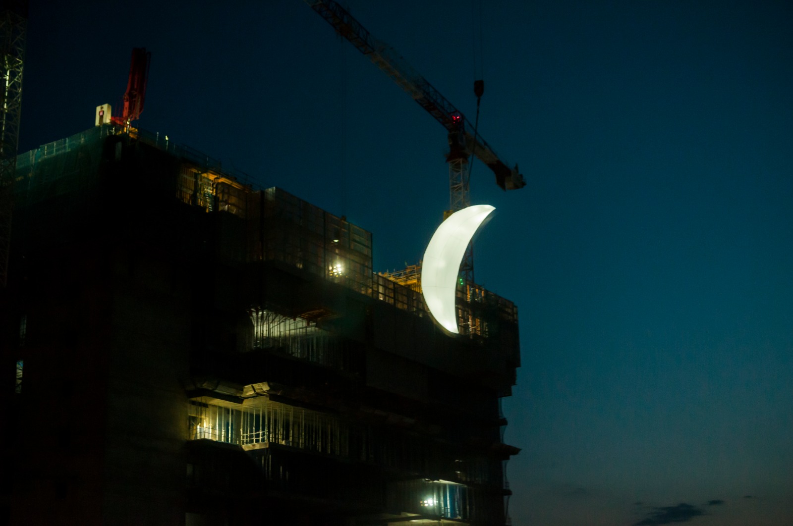 Caleido, uno de los proyectos inmobiliarios más importantes de Madrid, homenajea el 50 aniversario de la llegada del hombre a la Luna (el 20 de julio de 1969). Lo hará con una intervención artística consistente en una Luna brillante- en fase de cuarto creciente- de nueve metros, obra del artista SpY, que se suspenderá en la fachada. Este martes por la noche se ha hecho una prueba para que este sábado salga todo a la perfección. (1433 visitas)