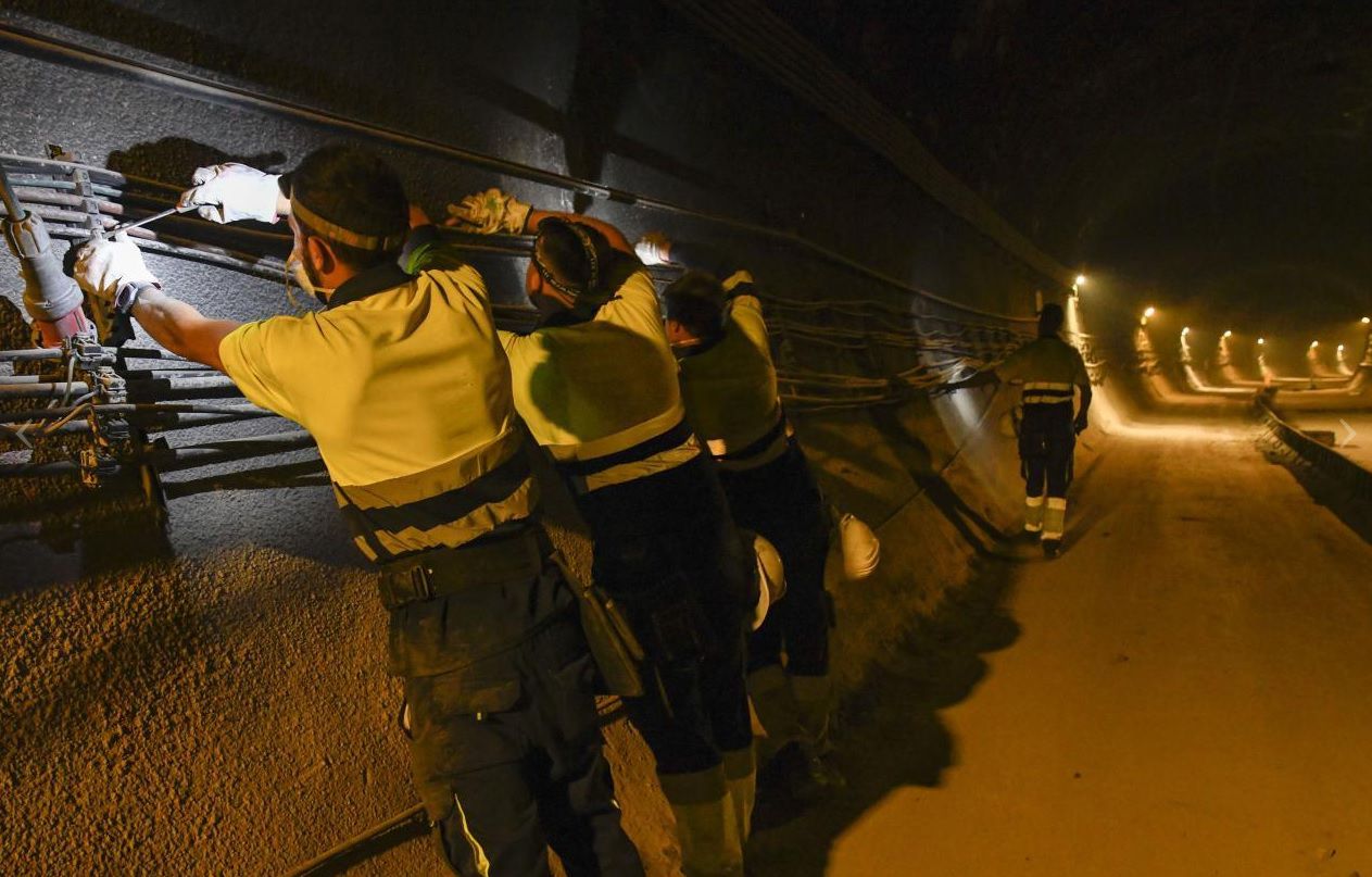 Adif y las diferentes empresas contratistas han movilizado a un equipo humano de unas 120 personas, trabajando en tres turnos los 7 días de la semana; a los que hay que sumar a los transportistas de material o conductores de hormigoneras.