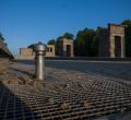 El Templo de Debod suma varios meses sin agua a su alrededor. Una avería en la tubería del suministro y fallos en la impermeabilidad de los vasos que contienen el agua estarían retrasando su reparación. (970 visitas)