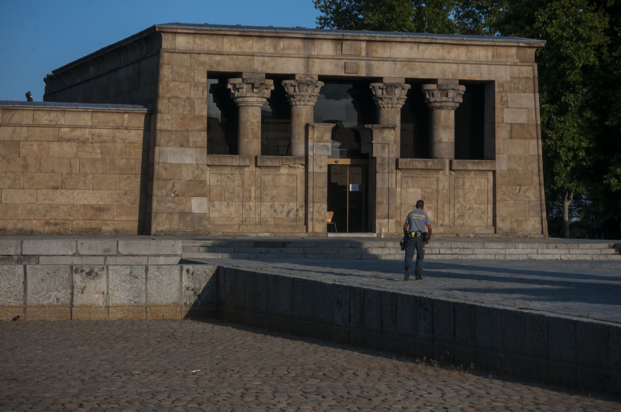 El Templo de Debod suma varios meses sin agua a su alrededor. Una avería en la tubería del suministro y fallos en la impermeabilidad de los vasos que contienen el agua estarían retrasando su reparación. (970 visitas)