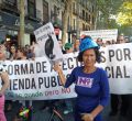 La Coordinadora de Vivienda de Madrid ha convocado una 'manifestival' este sábado con el objetivo de reivindicar el derecho a la vivienda que ha recorrido el centro de la capital para acabar en la plaza de Cibeles, frente al Ayuntamiento de la capital.
