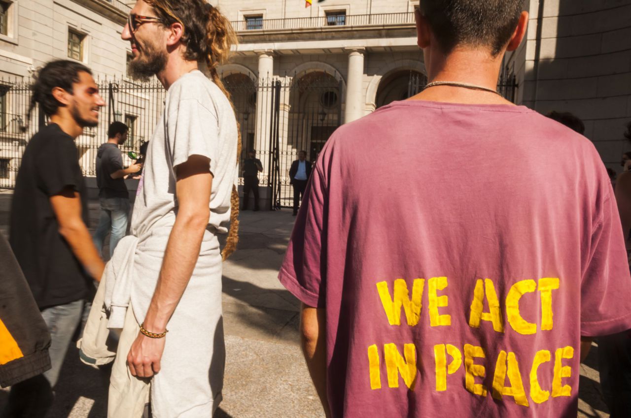 Un grupo de activistas ecologistas por el clima han improvisado una acampada frente al Ministerio para la Transición Ecológica.