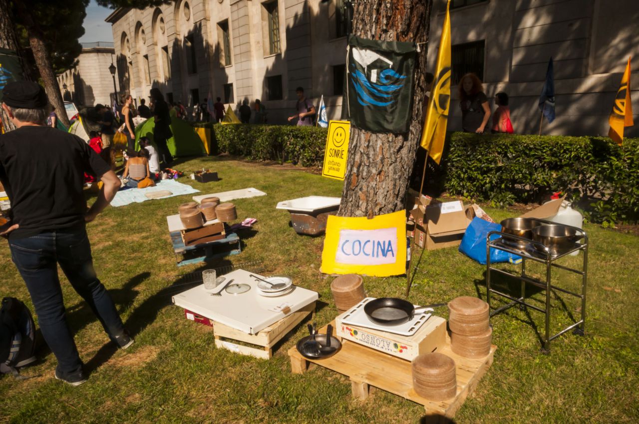 Un grupo de activistas ecologistas por el clima han improvisado una acampada frente al Ministerio para la Transición Ecológica.