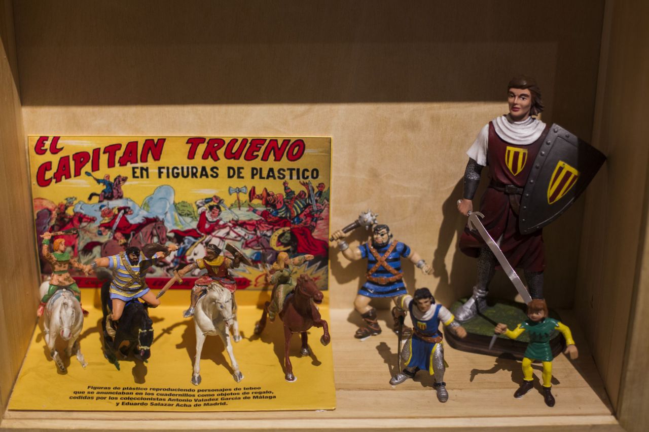 La exposición, comisariada por el coleccionista e historiados de tebeos Luis Conde, repasa editoriales y cabeceras míticas publicadas en esas décadas, como El Capitán Trueno, Roberto Alcázar y Pedrín, El Guerrero del Antifaz, Pulgarcito, TBO, Pumby, Sissi, Tío Vivo o Can Can.