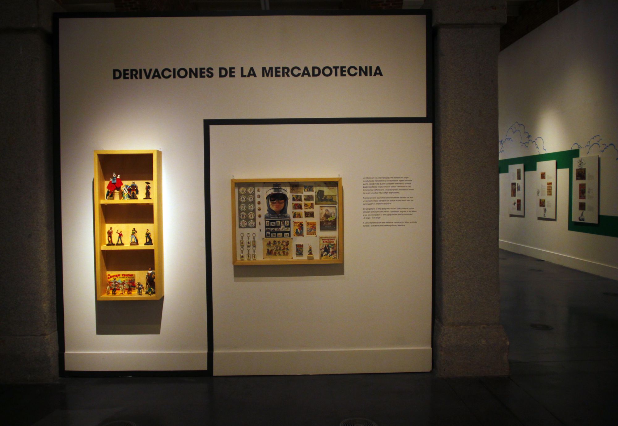 La exposición, comisariada por el coleccionista e historiados de tebeos Luis Conde, repasa editoriales y cabeceras míticas publicadas en esas décadas, como El Capitán Trueno, Roberto Alcázar y Pedrín, El Guerrero del Antifaz, Pulgarcito, TBO, Pumby, Sissi, Tío Vivo o Can Can.