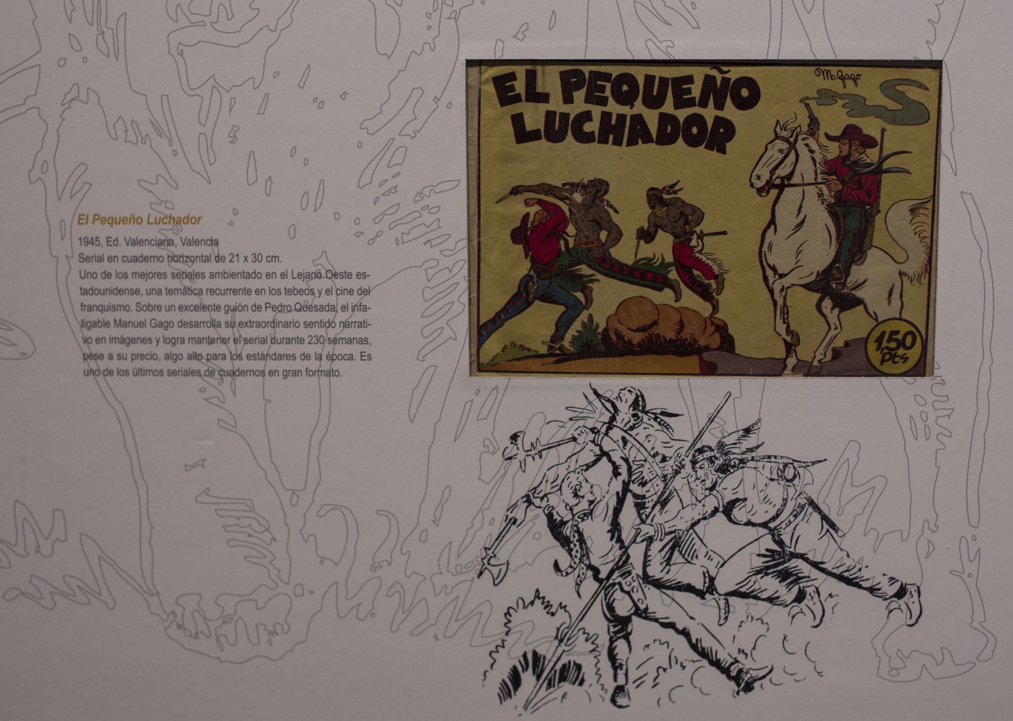 La exposición, comisariada por el coleccionista e historiados de tebeos Luis Conde, repasa editoriales y cabeceras míticas publicadas en esas décadas, como El Capitán Trueno, Roberto Alcázar y Pedrín, El Guerrero del Antifaz, Pulgarcito, TBO, Pumby, Sissi, Tío Vivo o Can Can. (2400 visitas)