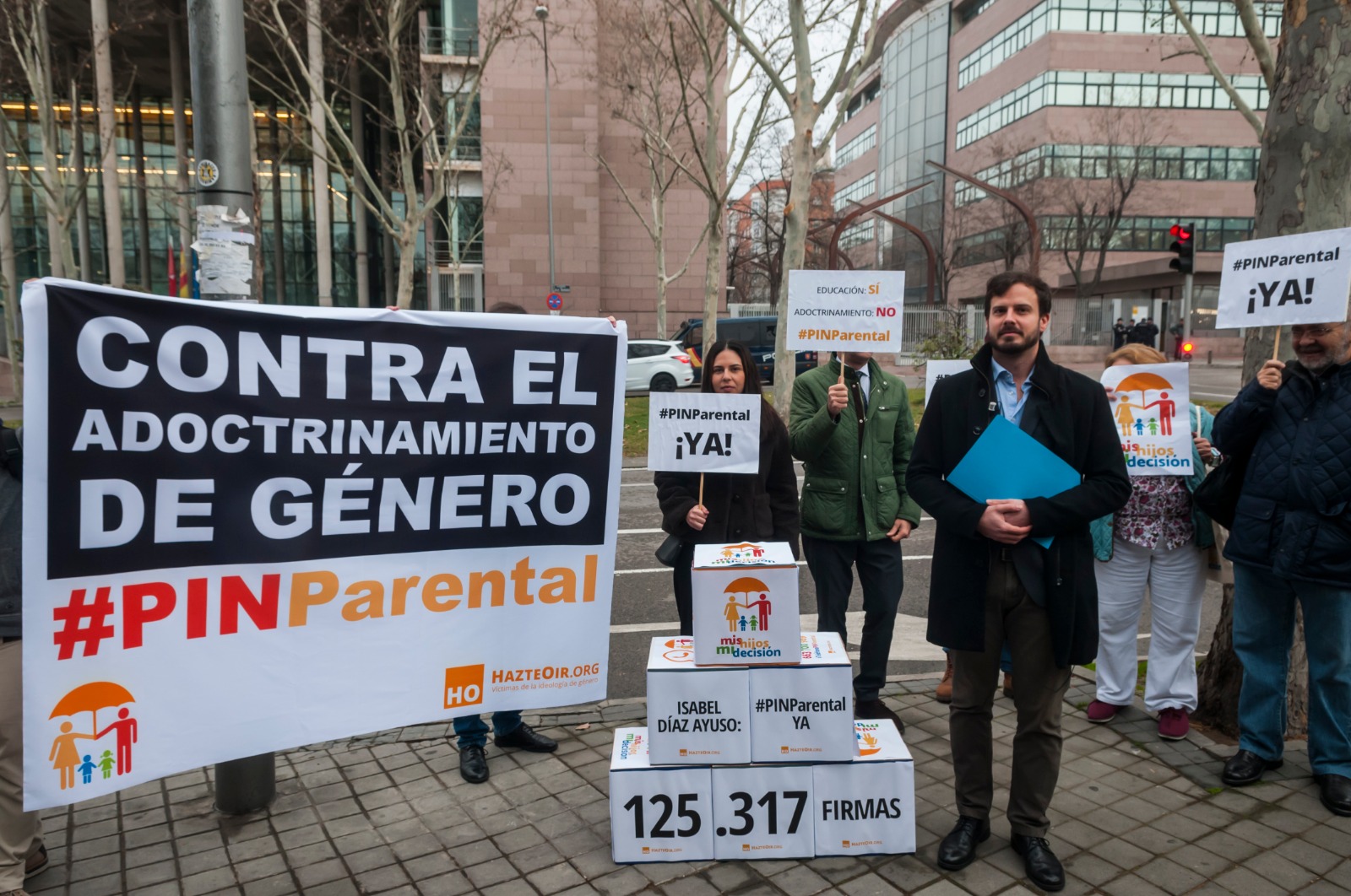 La asociación de extrema derecha ha entregado este jueves a Isabel Díaz Ayuso un total de 125.317 firmas de personas que piden que implante el 'pin parental' en los centros educativos de la Comunidad "con carácter urgente".