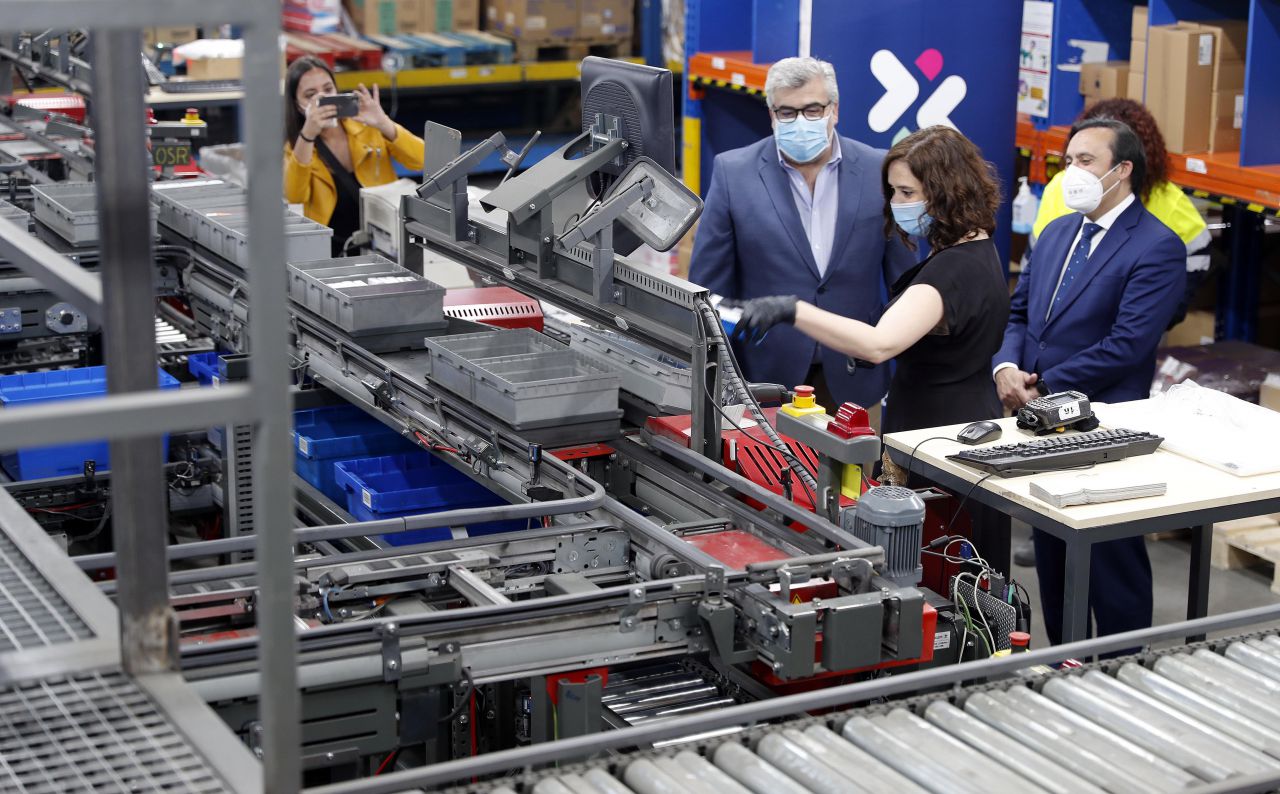 La presidenta de la Comunidad de Madrid, Isabel Díaz Ayuso, ha visitado uno de los almacenes de la distribuidora de medicamentos Cofares, en Móstoles, donde ha reconocido el trabajo de los farmacéuticos.