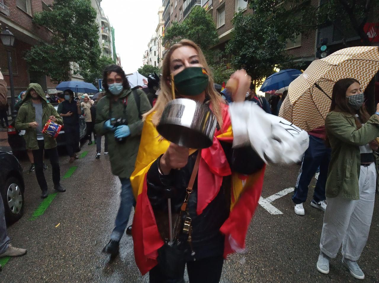 Un grupo aproximado de 60 personas se ha concentrado este martes en Núñez de Balboa para realizar una cacerolada de protesta contra el confinamiento y la gestión del Gobierno en la crisis del coronavirus.