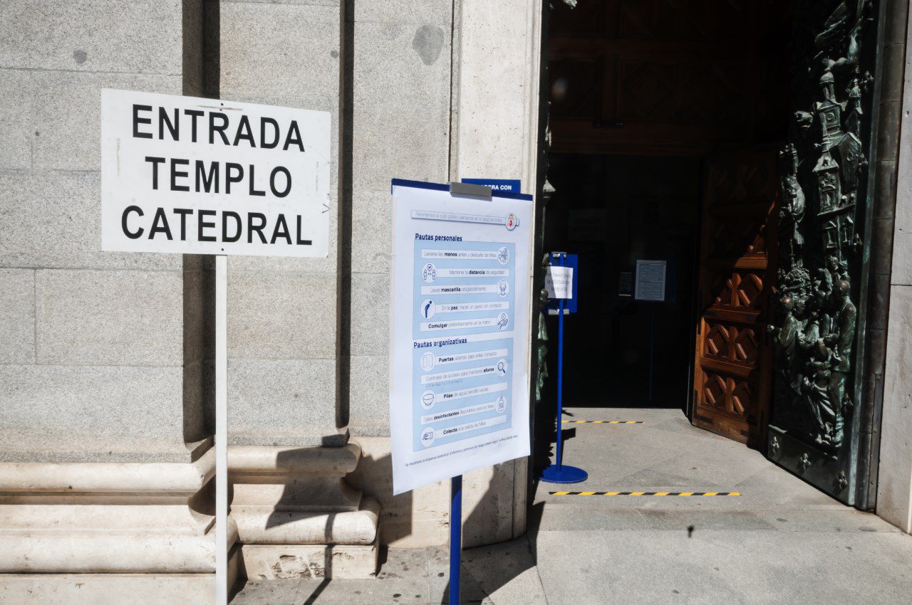 Vuelven las misas a la Catedral de la Almudena en Madrid. Entrada a la catedral