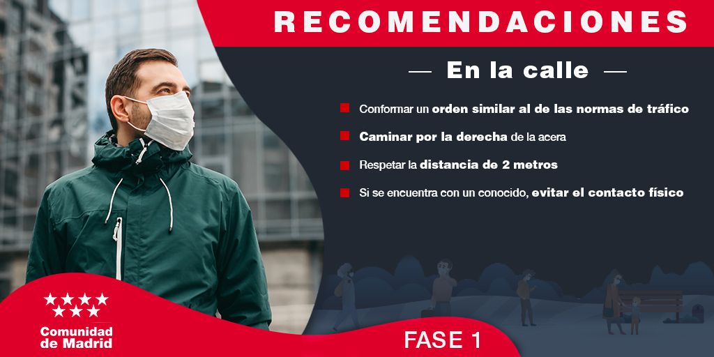 La Comunidad de Madrid ha distribuido varias infografías con recomendaciones para los ciudadanos, que pasarán este lunes a la fase 1. (4669 visitas)