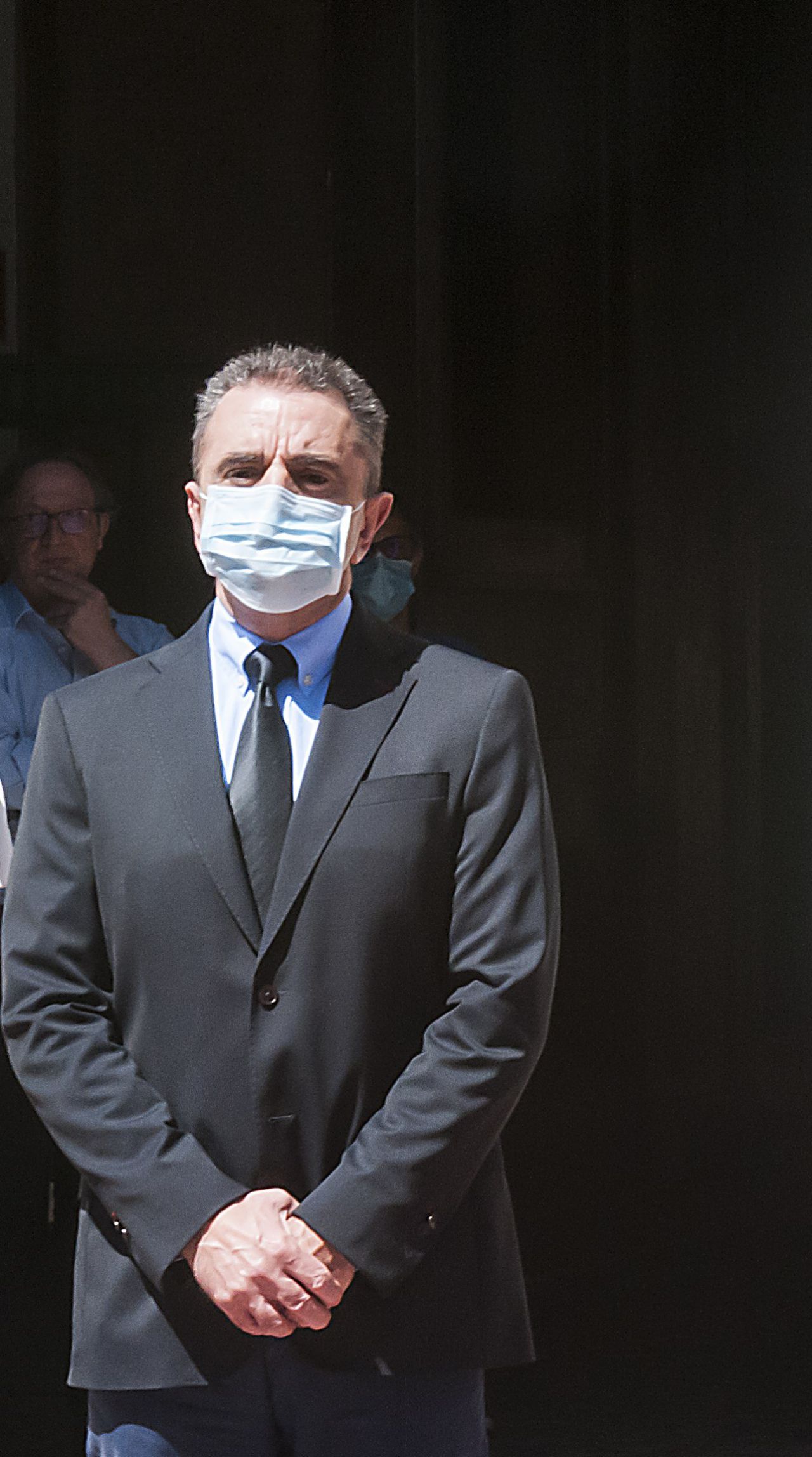 El delegado del Gobierno en Madrid, José Manuel Franco, participa en el minuto de silencio en el primer día de luto oficial de los diez decretados por el Gobierno en memoria de los fallecidos a consecuencia del coronavirus.