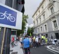 Colectivos ciclistas y ecologistas han llenado de bicicletas el lateral este de la Castellana, entre la plaza de Colón y la glorieta de Cibeles, para reivindicarla como medio de transporte durante la desescalada en el Día Mundial de la Bicicleta.