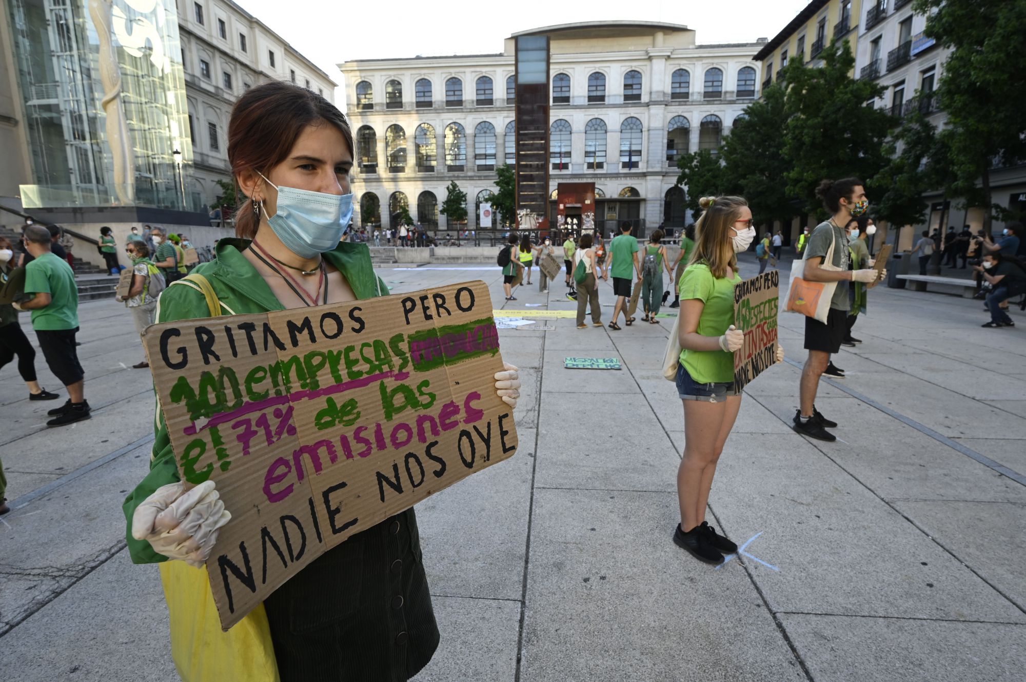 Este viernes, día mundial del Medio Ambiente, tuvieron lugar en la capital varias acciones "por la justicia social y ambiental" de la mano de las organizaciones que integran las plataformas 2020 Rebelión por el Clima y Alianza por el Clima. Una de ellas tuvo lugar en la plaza del Museo Reina Sofía, donde se congregaron decenas de ecologistas, ataviados con ropa verde y con pancartas en protesta por el daño al Medio Ambiente que está haciendo el ser humano. (241 visitas)