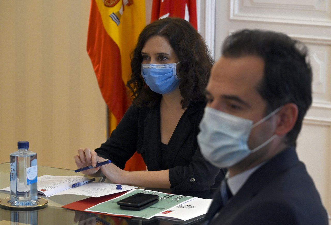 La presidenta del Gobierno de la Comunidad de Madrid, Isabel Díaz Ayuso, junto al vicepresidente regional, Ignacio Aguado, se reunieron este viernes con la portavoz del Grupo Parlamentario Unidas Podemos, Isa Serra, y con el de Más Madrid, Pablo Gómez Perpinyà, para dialogar y poner en común posibles medidas para la reconstrucción de la región tras la crisis sanitaria. (114 visitas)