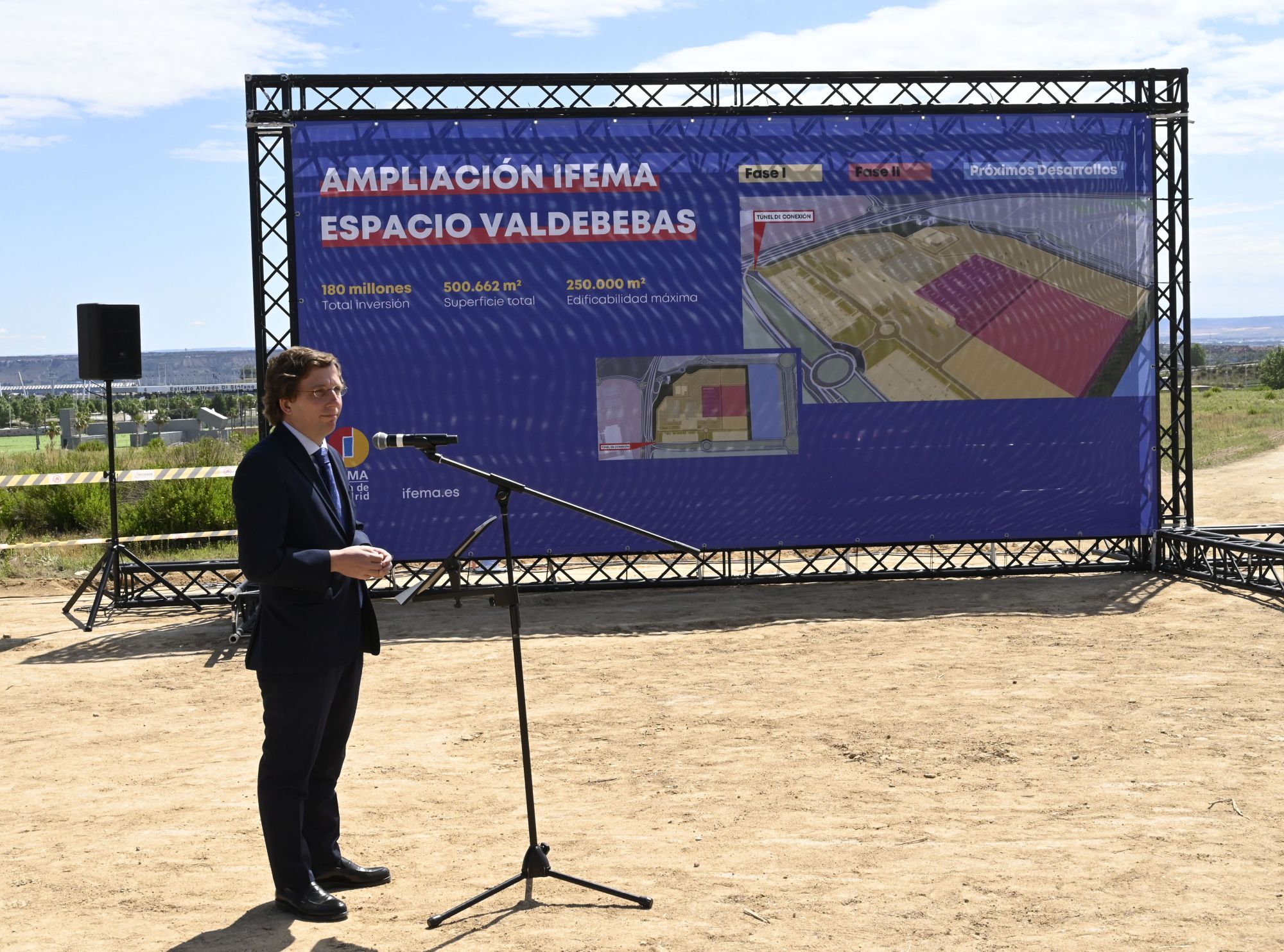 Presentación del inicio de las obras de ampliación de IFEMA en Valdebebas, con la participación de la presidenta de la Comunidad de Madrid, Isabel Díaz Ayuso; el alcalde de la ciudad, José Luis Martínez Almeida; el presidente del Comité Ejecutivo de IFEMA, Clemente González Soler, y el director general de IFEMA, Eduardo López-Puertas.