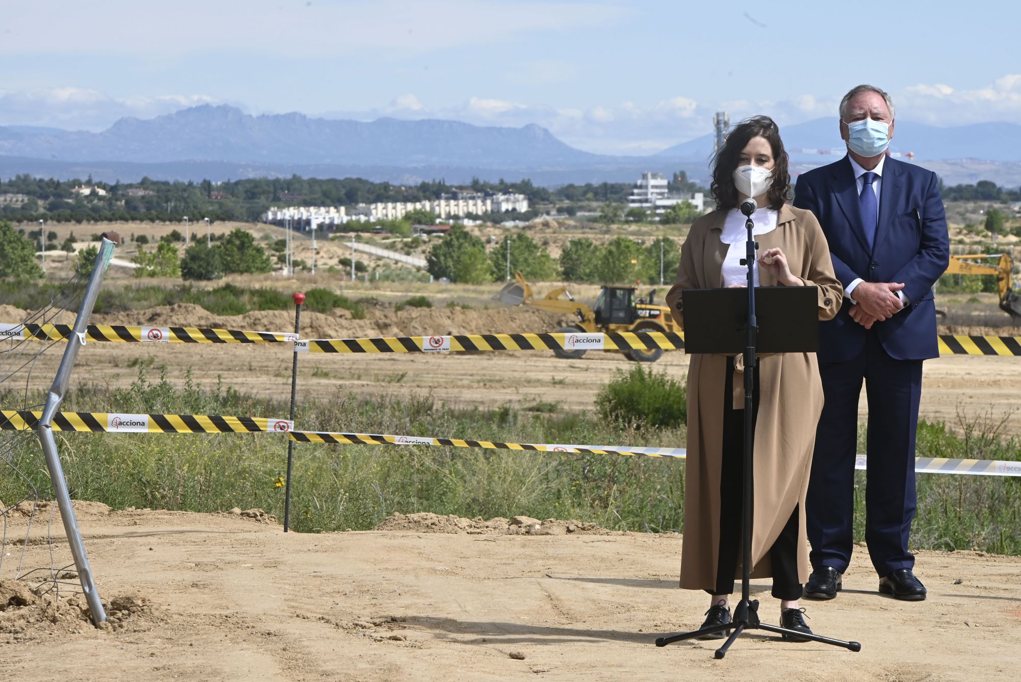 Ayuso,Almeida,Ifema La Presidenta de la Comunidad de Madrid. Isabel Diaz Ayuso acompañada por el Alcalde Almeida y el Presidente y director general de IFEMA. visitan las obras de Ampliación de dicho recinto en Valdebebas.Ampliación iFEMA