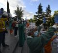Concentración a las puertas del Hospital Gregorio Marañon del personal sanitario. Agradecen e Premio Princesa de Asturias pero con guantes azules pintados de tinta negra protestan por el estado de la sanidad.