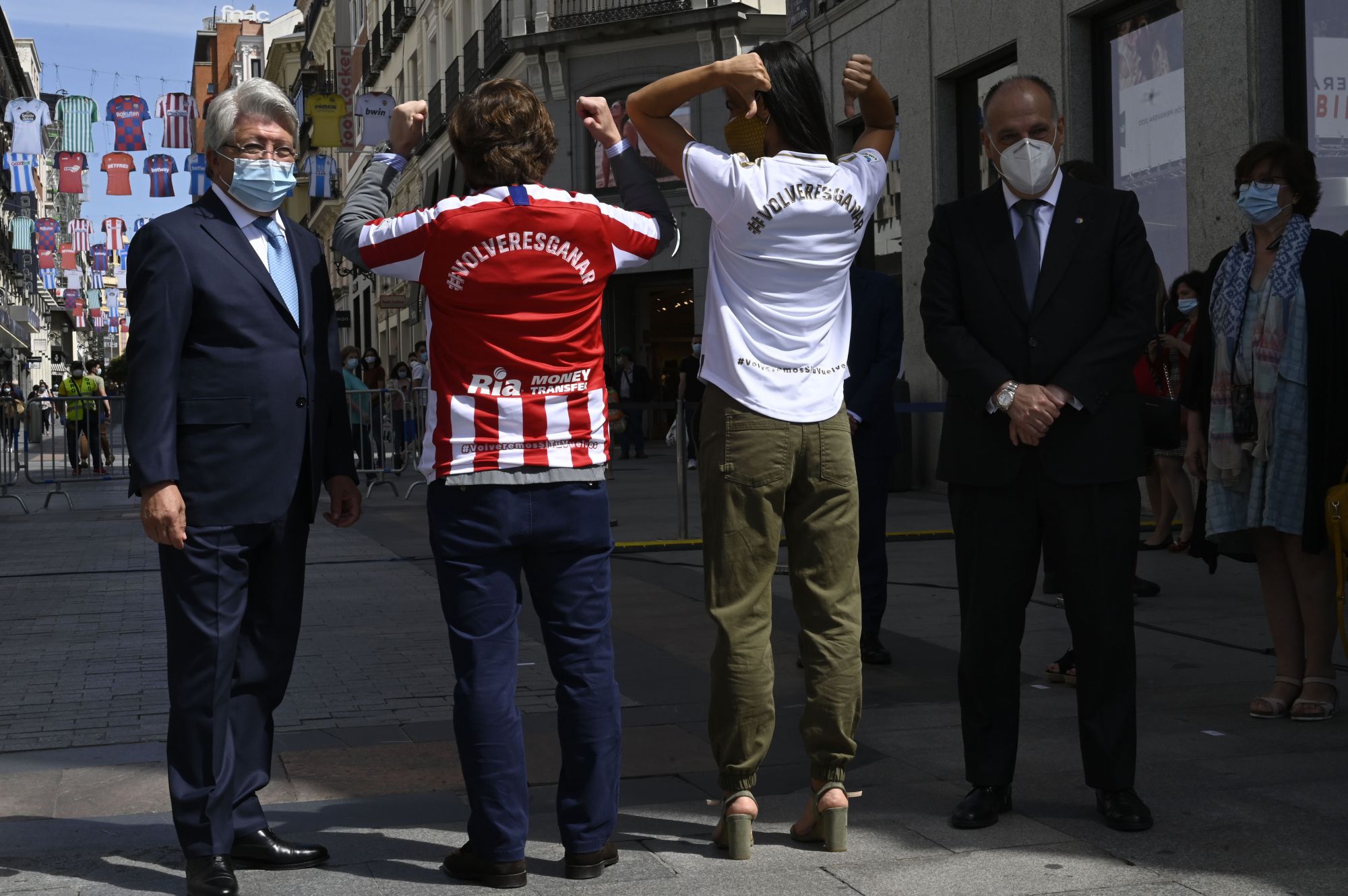 El alcalde de la capital, José Martínez-Almeida, y la vicealcaldesa, Begoña Villacís, participan en un acto organizado por la LaLiga Santander de apoyo al retorno del fútbol