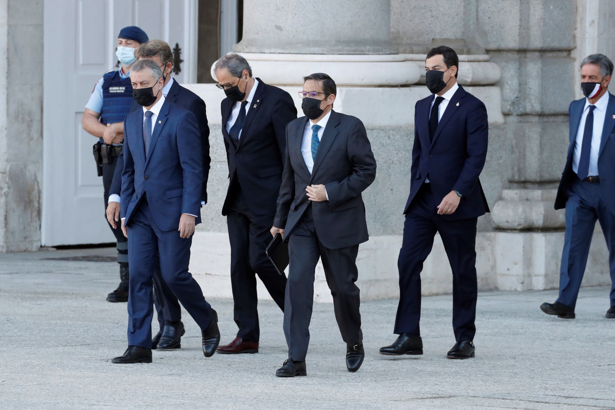 El lehendakari, Íñigo Urkullu, el presidente de la Generalitat, Quim Torra, y el presidente de Andalucía, Juanma Moreno.