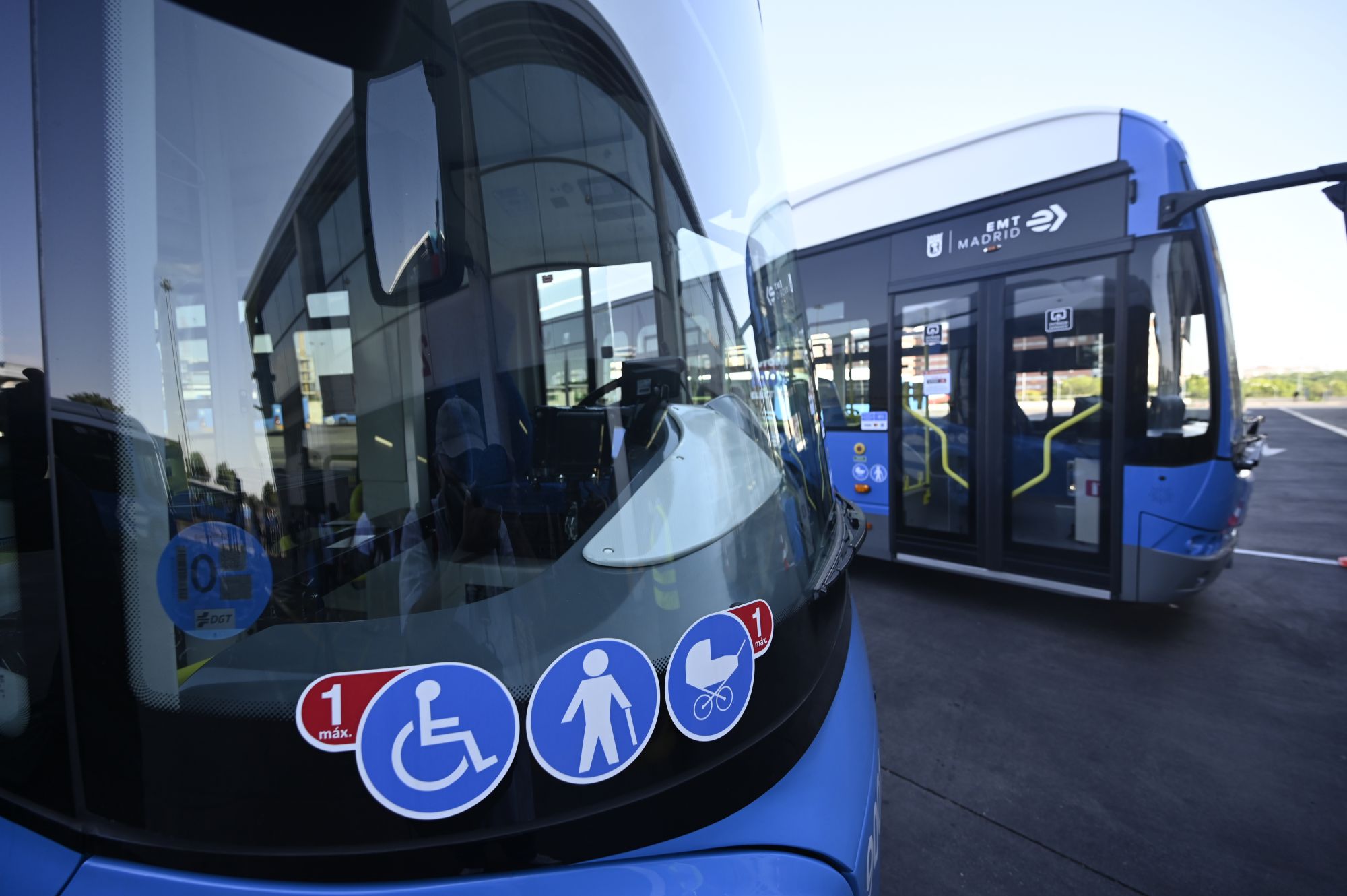 José Luis Martínez-Almeida, junto al delegado de Medio Ambiente y Movilidad, Borja Carabante, han visitado el Centro de Operaciones de la EMT en Carabanchel para conocer los dos modelos de autobuses eléctricos que acaba de comprar el Ayuntamiento de Madrid en una nueva adquisición de 50 vehículos.