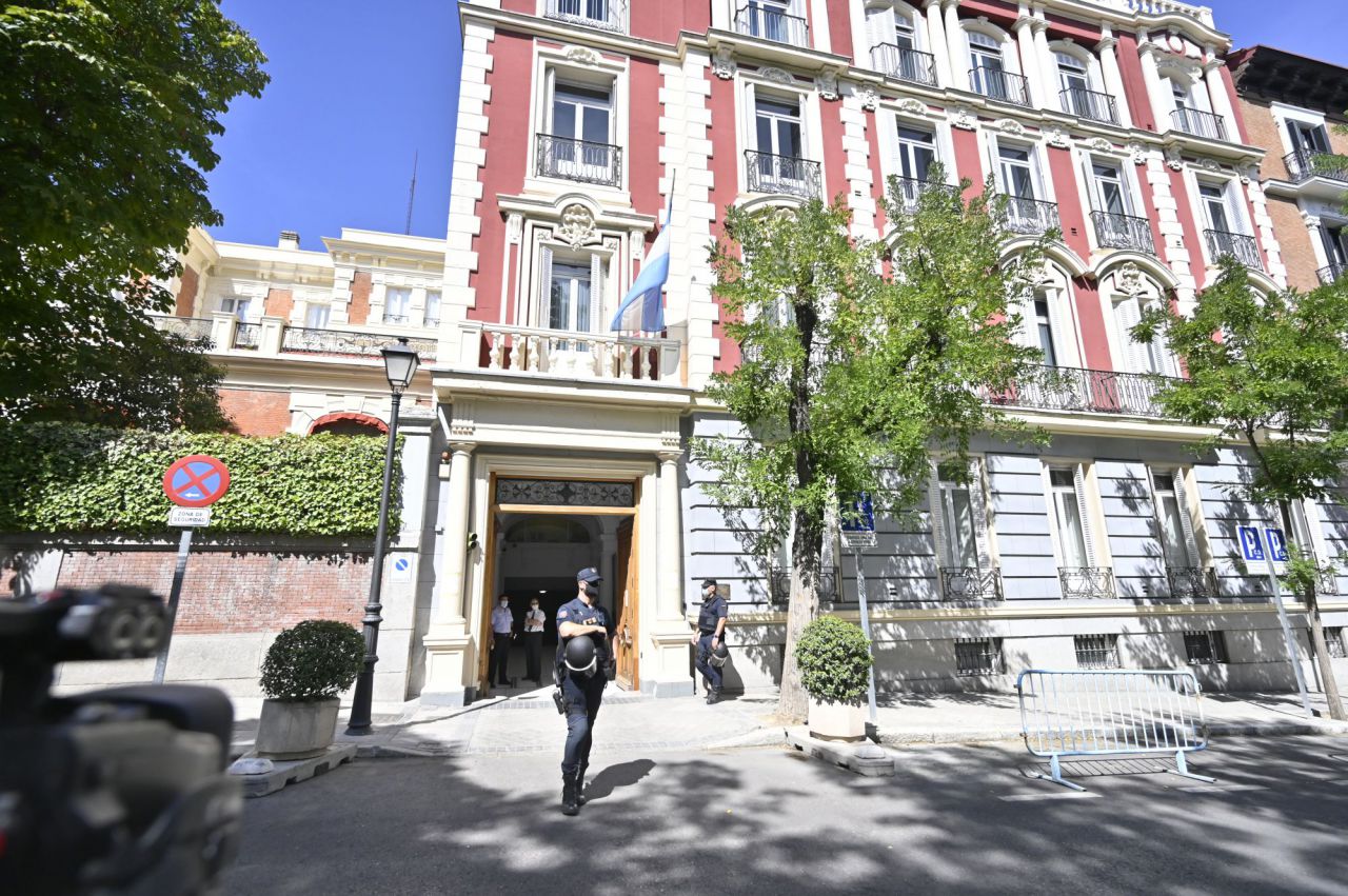 Decenas de personas se concentran ante la Embajada de Argentina a la hora en que declaraba por videoconferencia Rodolfo Martín Villa.