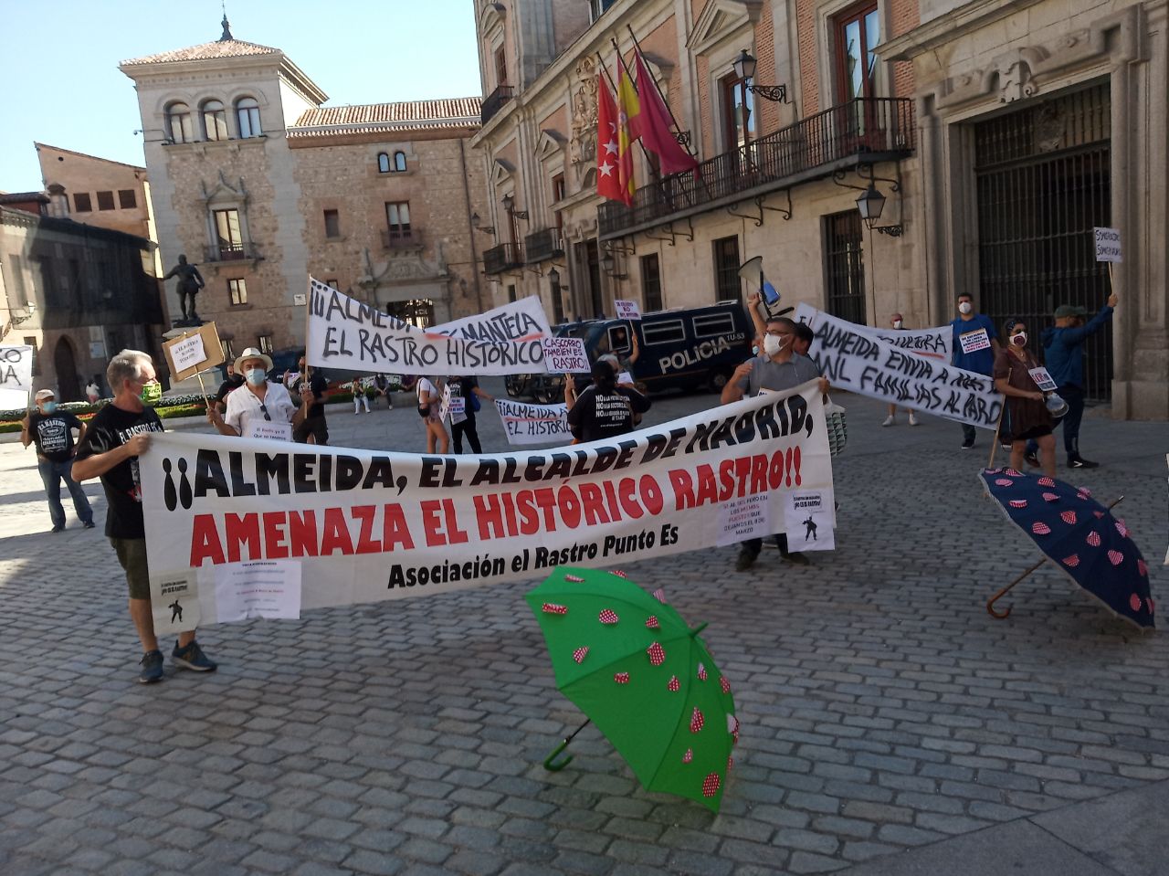 Los comerciantes y vendedores ambulantes del Rastro se han concentrado este miércoles en la Plaza de la Villa por la reapertura del emblemático mercado de la capital. Durante la concentración, que se ha desarrollado a las 17 horas, se ha realizado una cacelorada. (399 visitas)