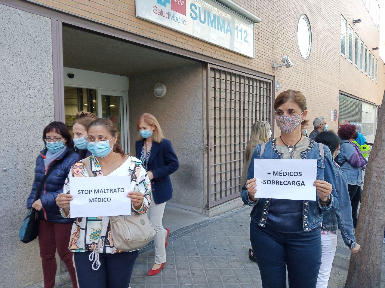 Los médicos en huelga del SUMMA 112 han leído este martes un manifiesto en una concentración en la sede de este servicio de urgencias donde denuncian las consecuencias de sus "precarias" condiciones laborales. (153 visitas)