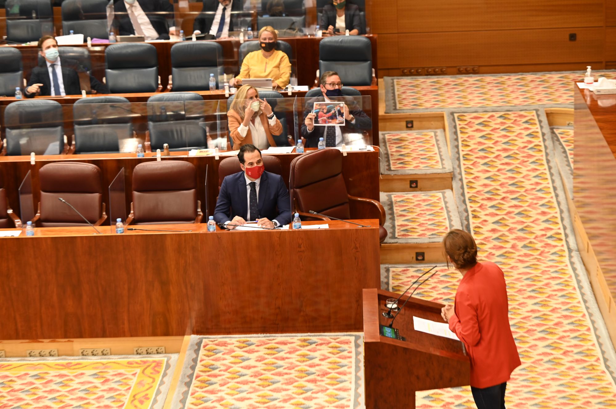 En plena sesión plenaria de la Asamblea de Madrid, entre preguntas y peticiones sobre la actual situación de pandemia de la Comunidad de Madrid, que se encuentra en un estado de alarma desde hace seis días, la política madrileña -y nacional- se ha centrado hoy en un gesto. Las interlocuciones entre unos y otros grupos políticos se ha transformado en esta ocasión en una algarabía de acusaciones y llamadas al orden, al mismo tiempo que en los pasillos de la Cámara regional únicamente se comentaba, en la mayor parte de ocasiones con algún que otro suspiro, la situación creada.
