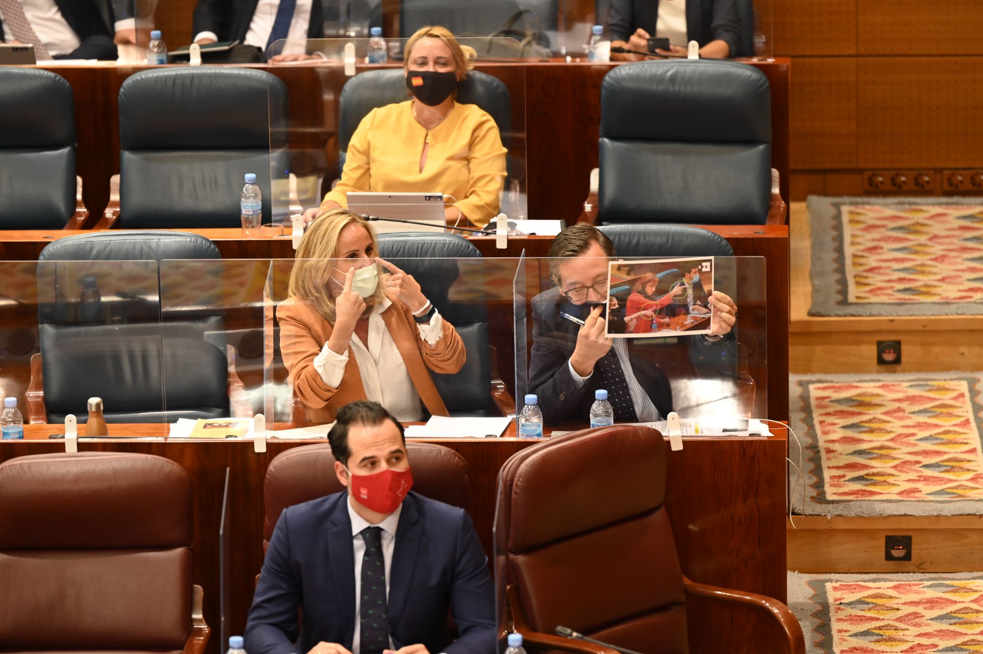 En plena sesión plenaria de la Asamblea de Madrid, entre preguntas y peticiones sobre la actual situación de pandemia de la Comunidad de Madrid, que se encuentra en un estado de alarma desde hace seis días, la política madrileña -y nacional- se ha centrado hoy en un gesto. Las interlocuciones entre unos y otros grupos políticos se ha transformado en esta ocasión en una algarabía de acusaciones y llamadas al orden, al mismo tiempo que en los pasillos de la Cámara regional únicamente se comentaba, en la mayor parte de ocasiones con algún que otro suspiro, la situación creada.