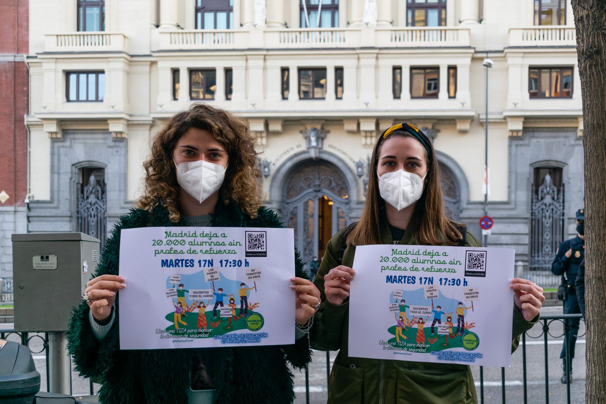 Docentes y sindicatos se han concentrado hoy a las puertas de la Consejería de Educación y Juventud para pedir la renovación del contrato de 1.500 profesionales cuyo contrato finaliza el 22 de diciembre. La manifestación, bajo el lema 'DocentesTodoElCurso" y "#RefuerzosCovidNecesarios, ha sido convocada por el sindicato CCOO de Madrid. (496 visitas)