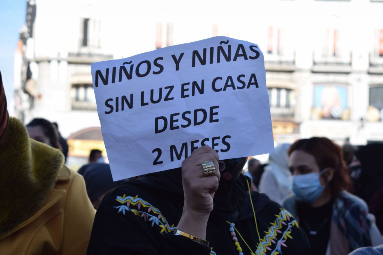 Decenas de vecinos de Cañada Real se han plantado ante la sede de la Comunidad de Madrid, en la Puerta del Sol, por la falta de suministro eléctrico continuado desde hace dos meses.