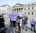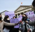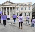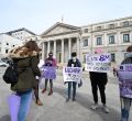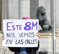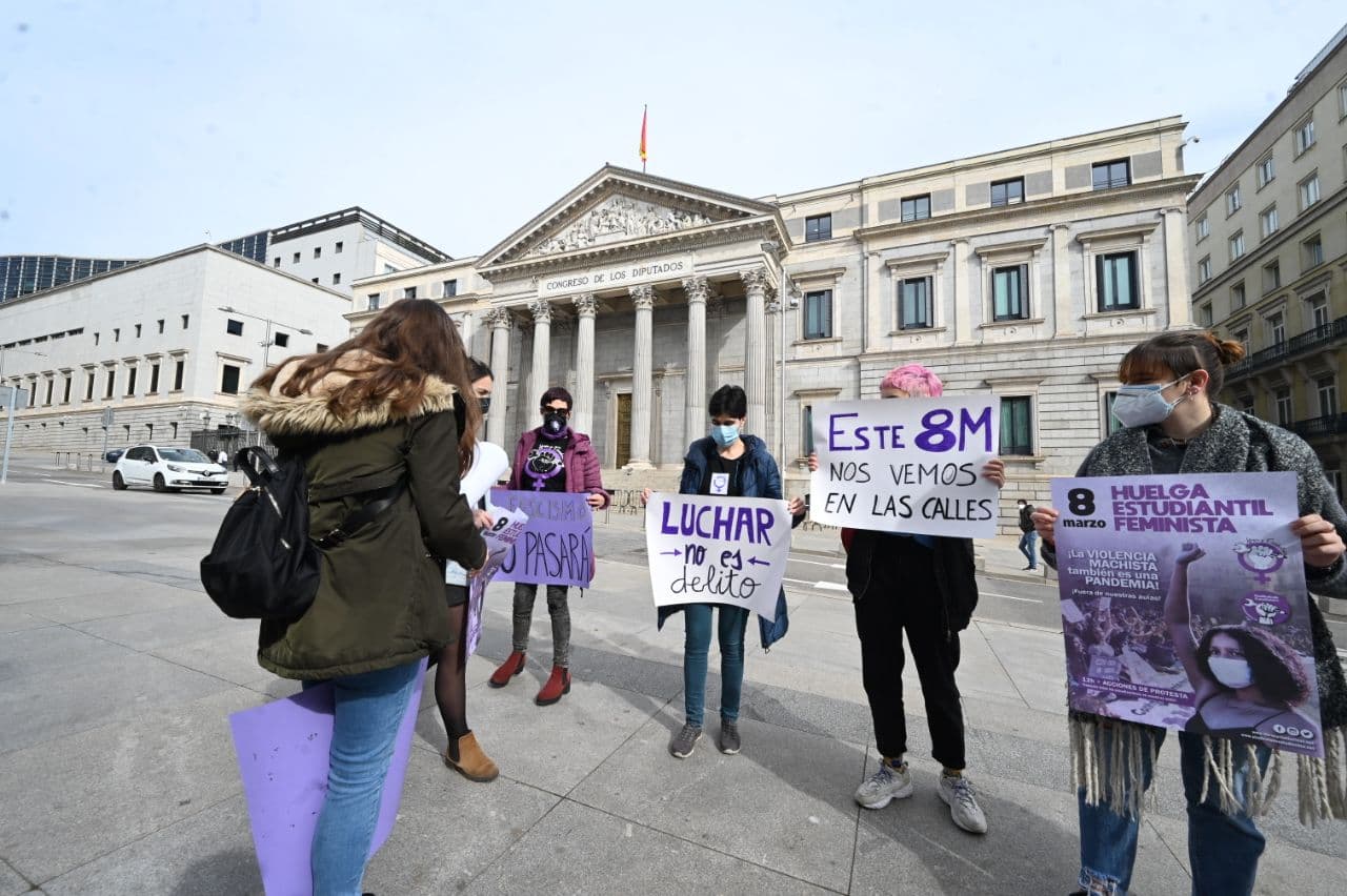 Una representación del Sindicato de Estudiantes se concentra frente al Congreso de los Diputado contra la decisión de la delegación del Gobierno sobre la manifestación del 8M, Día de la Mujer, y advirtiendo que "este 8M nos vemos en las calles".