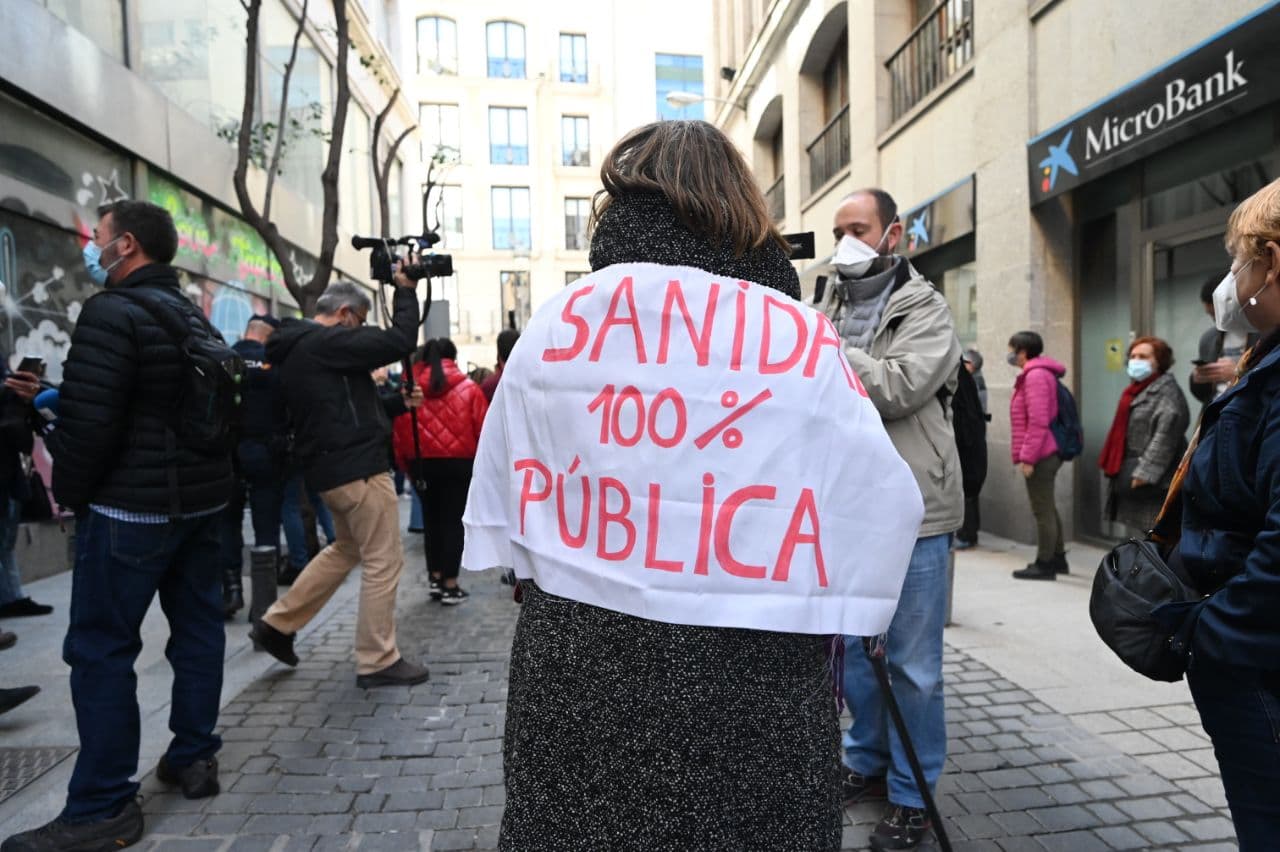 La Coordinadora Anti Privatización de la Sanidad ha protagonizado este sábado concentraciones en varios puntos de la Comunidad de Madrid, una ante el Ministerio de Sanidad, con el lema 'Frente a la privatización, sanidad pública', reivindica la derogación de las "leyes privatizadoras" (15/97 y artículo 90 LGS) y el "rescate de lo privatizado". En un momento de la manifestación, un grupo de extrema derecha ha irrumpido en el recorrido y ha provocado enfrentamientos entre los manifestantes