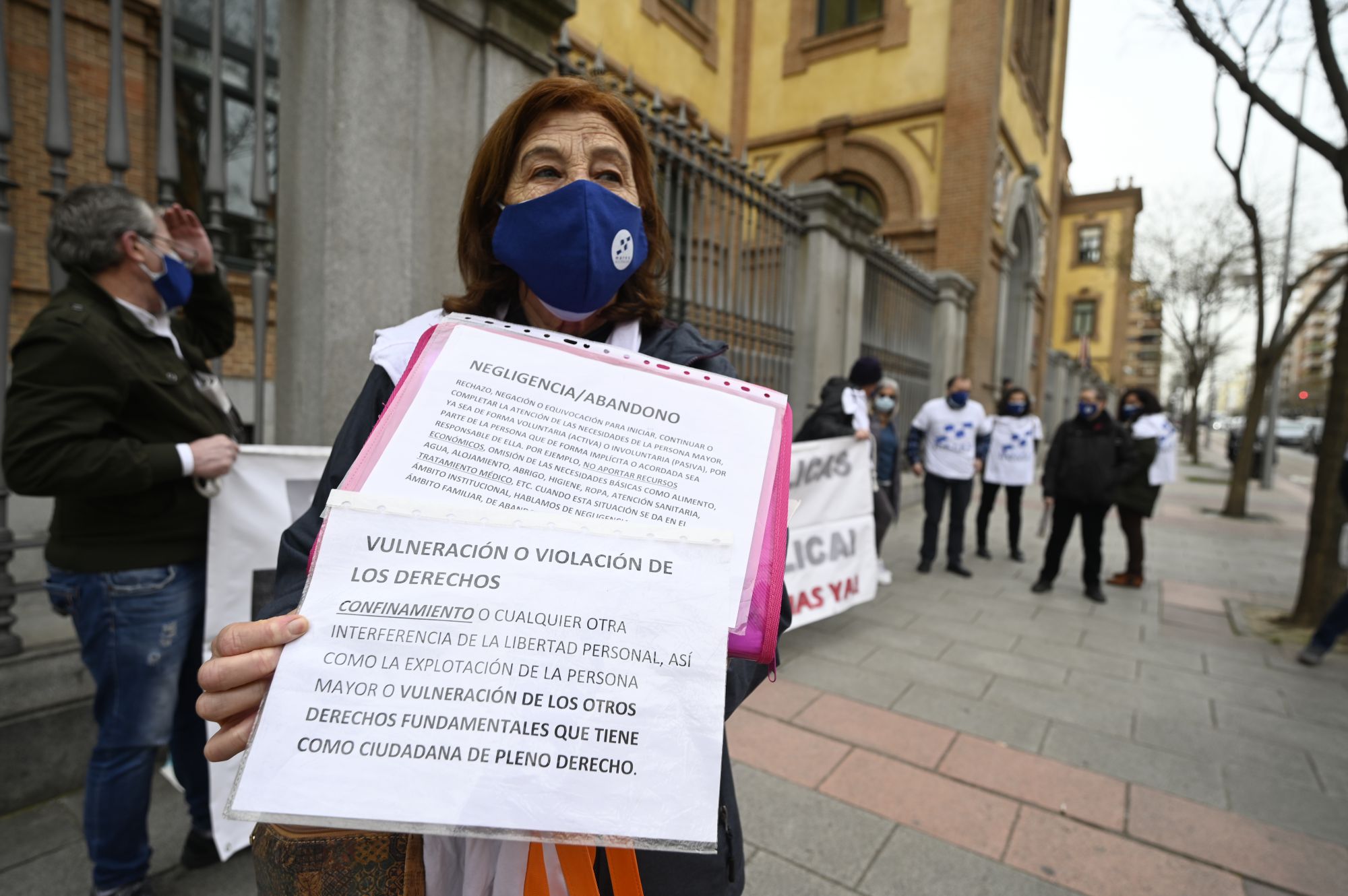 La Marea de Residencias y la Asociación en Defensa de los Mayores en Residencias (ADEMAF) se han concentrado frente a la Consejería de Políticas Sociales de Madrid contra el Acuerdo Marco negociado con los empresarios, que dicen se ha firmado "a sus espaldas".