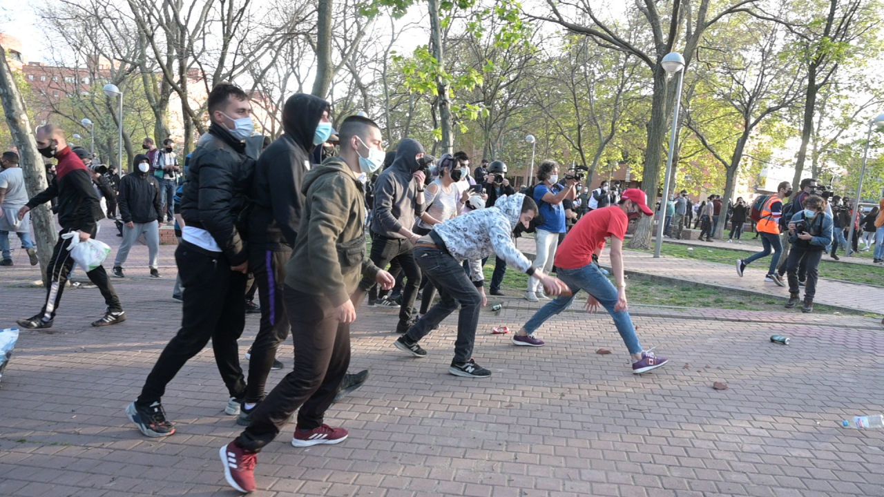 Grupos antifascistas se han enfrentado al dispositivo policial que protegía el acto de presentación de la candidatura de Vox en Vallecas.