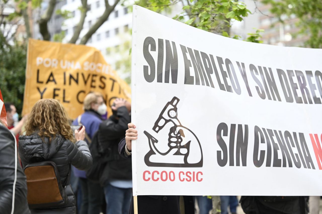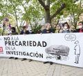 Diferentes colectivos pertenecientes al mundo de la investigación se ha concentrado este jueves frente al frente a la sede del Ministerio de Ciencia, en el Paseo de la Castellana, para frenar la reforma de la Ley 14/2011 de la Ciencia, la Tecnología y la Innovación, ya presentada al Consejo de Ministros.