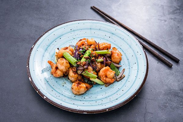 Langostinos al ajillo estilo chino, Shang Hai Station