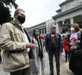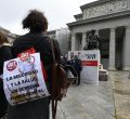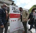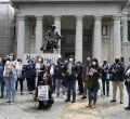 Los sindicatos CCOO y UGT se han concentrado este miércoles en memoria de las víctimas de los accidentes laborales registrados en la región con motivo del Día Mundial de la Seguridad y la Salud en el Trabajo. El acto se ha desarrollado frente a la estatua de Velázquez del Museo del Prado.