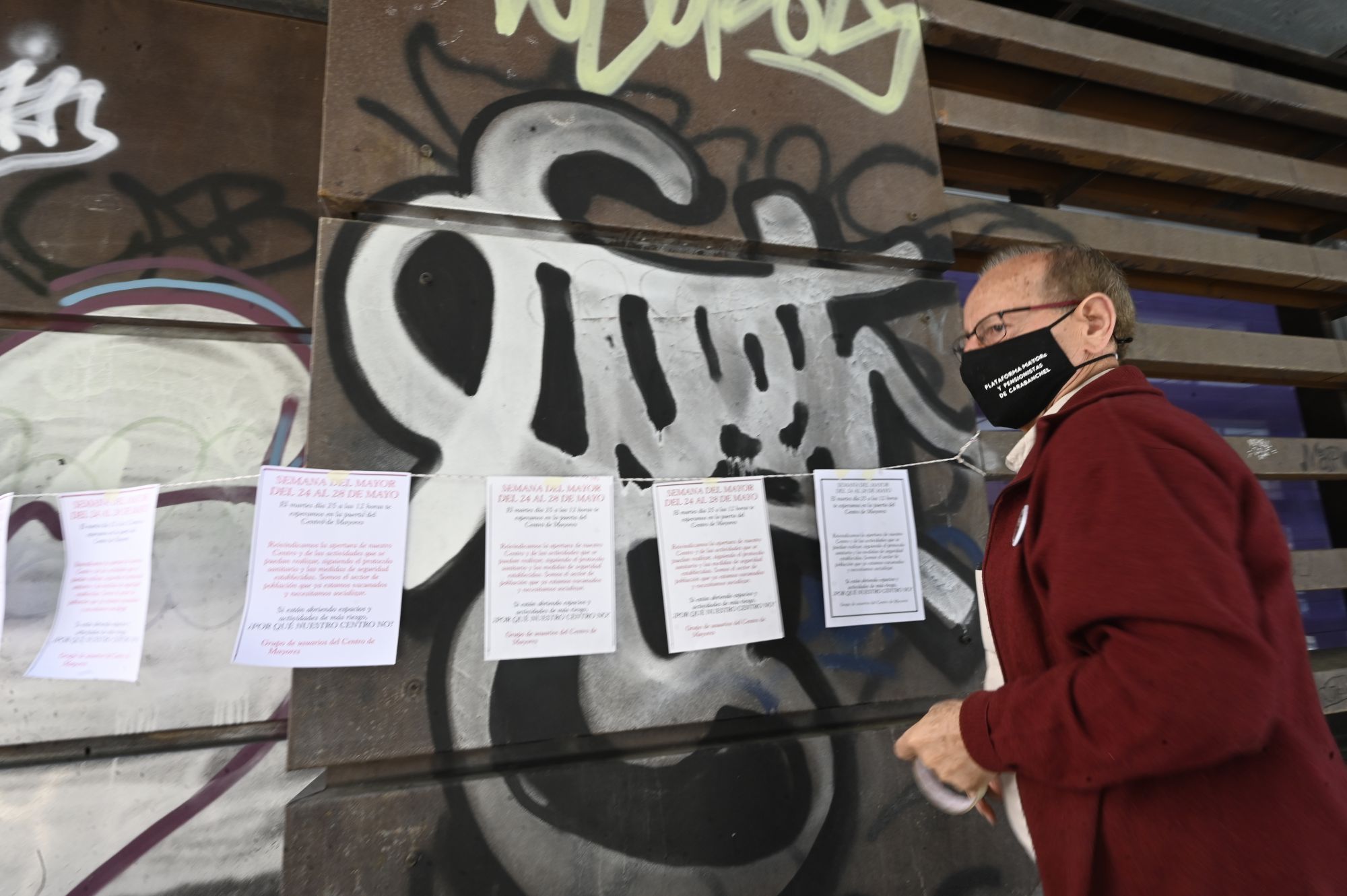 Decenas de mayores del distrito de Carabanchel protagonizaron este martes una sentada frente a cinco centros para exigir al Gobierno regional que los reabra. Los socios de los centros Francisco de Goya, San Vicente de Paúl, Tierno Galván, Monseñor Óscar Romero y Roger de Flor no entienden por qué no se les permite reanudar sus talleres "cuando se puede hacer con todas las precauciones".