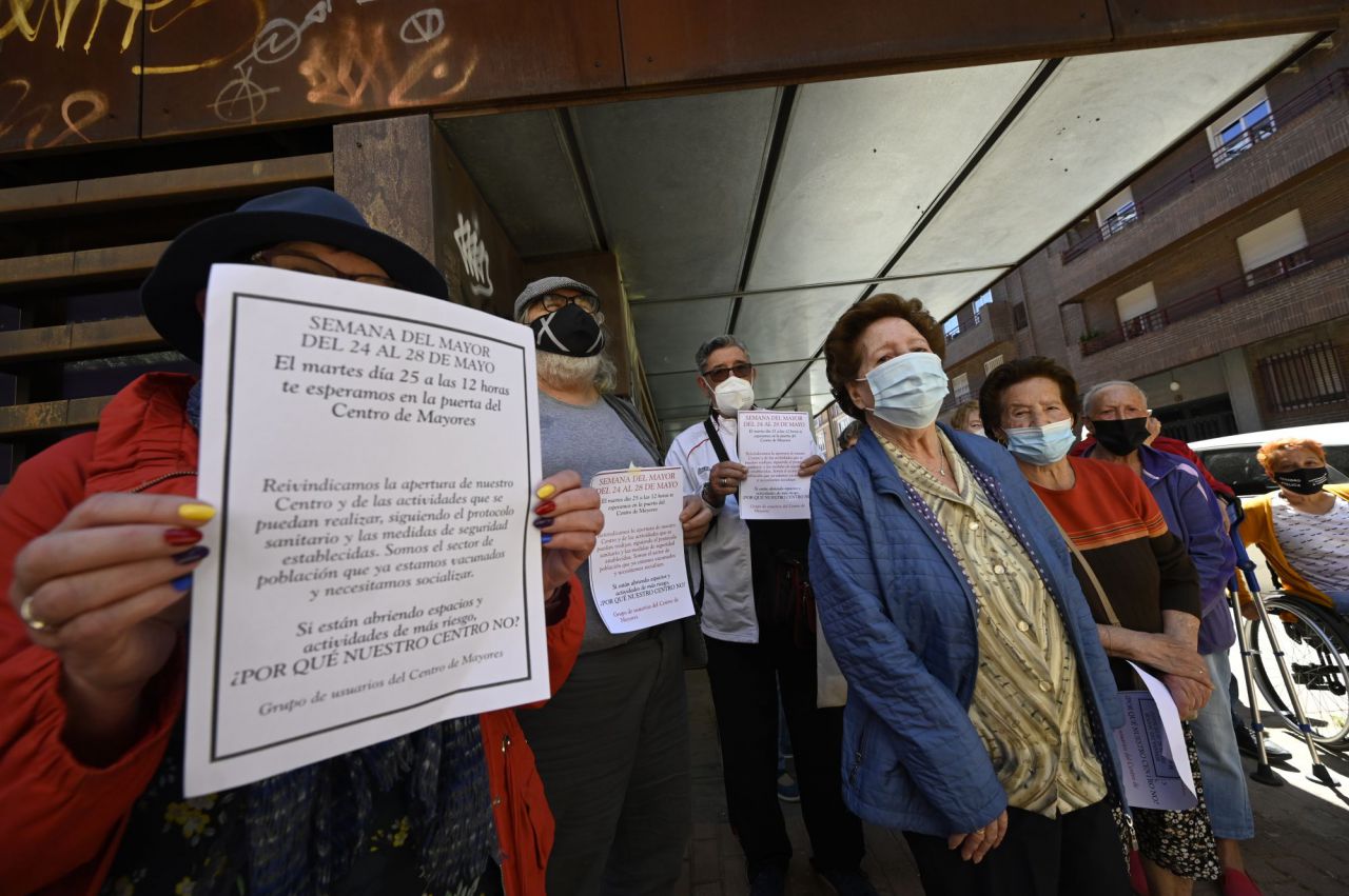 Decenas de mayores del distrito de Carabanchel protagonizaron este martes una sentada frente a cinco centros para exigir al Gobierno regional que los reabra. Los socios de los centros Francisco de Goya, San Vicente de Paúl, Tierno Galván, Monseñor Óscar Romero y Roger de Flor no entienden por qué no se les permite reanudar sus talleres "cuando se puede hacer con todas las precauciones".