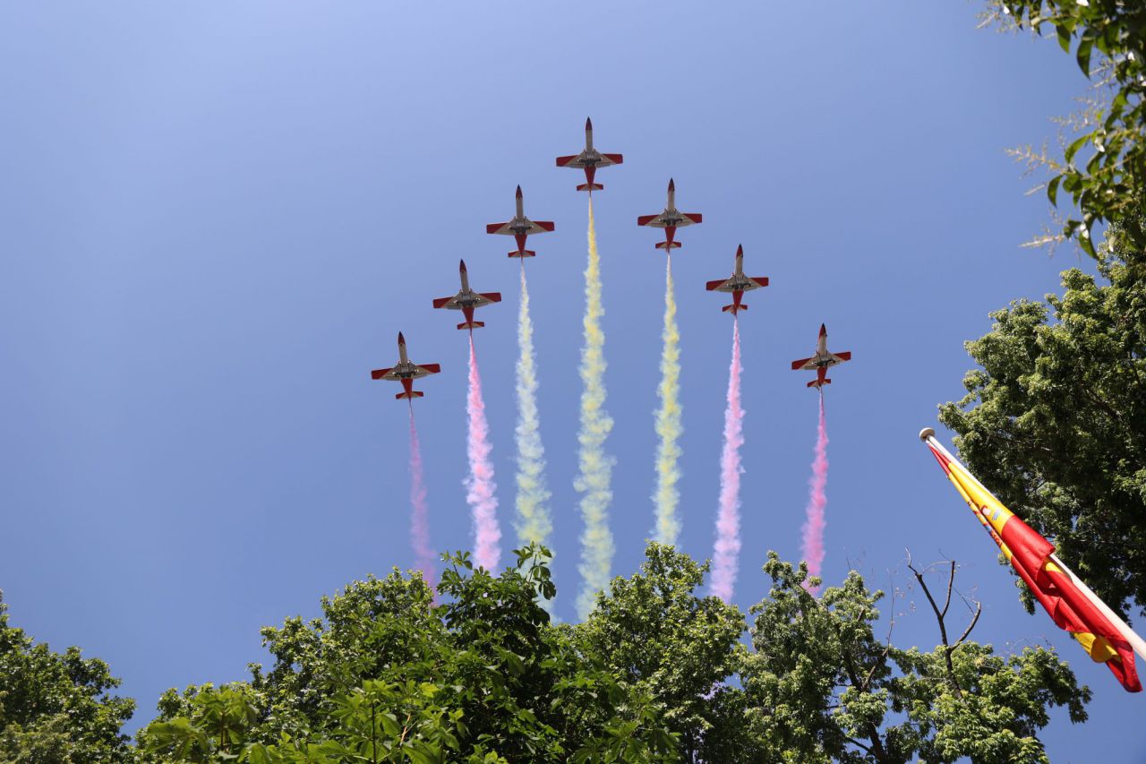 Los Reyes han presidido este sábado los actos centrales del Día de las Fuerzas Armadas, que "tímidamente" han vuelto a salir a la calle para acercarse a los ciudadanos pese a las restricciones sanitarias marcadas por la pandemia del coronavirus.