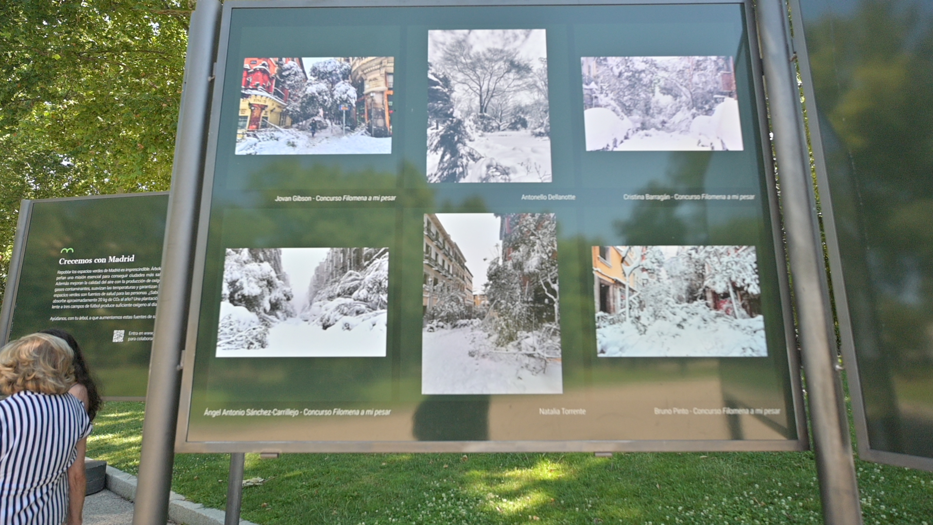 Las mejores instantáneas del concurso 'Filomena, a mi pesar' decoran el Paseo de Carruajes, en el Parque del Retiro, como parte del proyecto 'Re-Planta Madrid'.