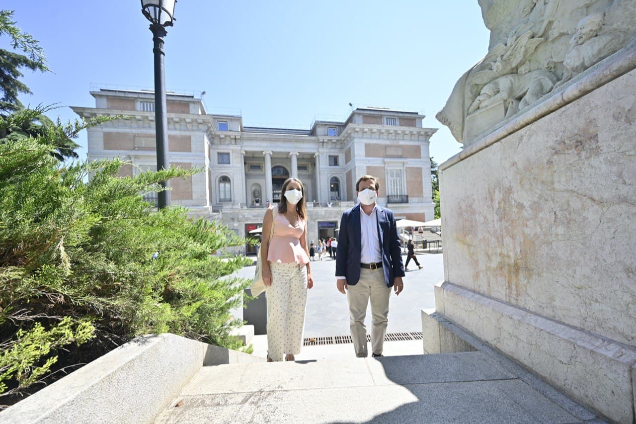 El alcalde de Madrid, José Luís Martínez Almeida, y la delegada de Cultura del Ayuntamiento de Madrid, Andrea Levy, en el Museo Del Prado tras conocer que el eje Prado-Retiro se convierten en Patrimonio Mundial de la Unesco