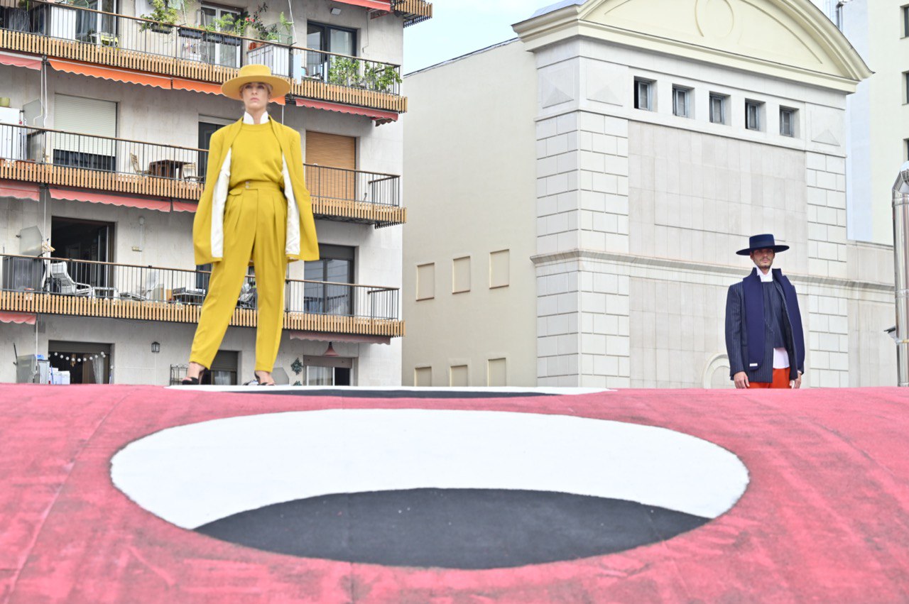 'El Caminante' es el título de la colección que ha presentado Oteyza en los pasillos y la azotea del Mercado de los Mostenses, convertido en improvisada pasarela de la Semana de la Moda de Madrid.